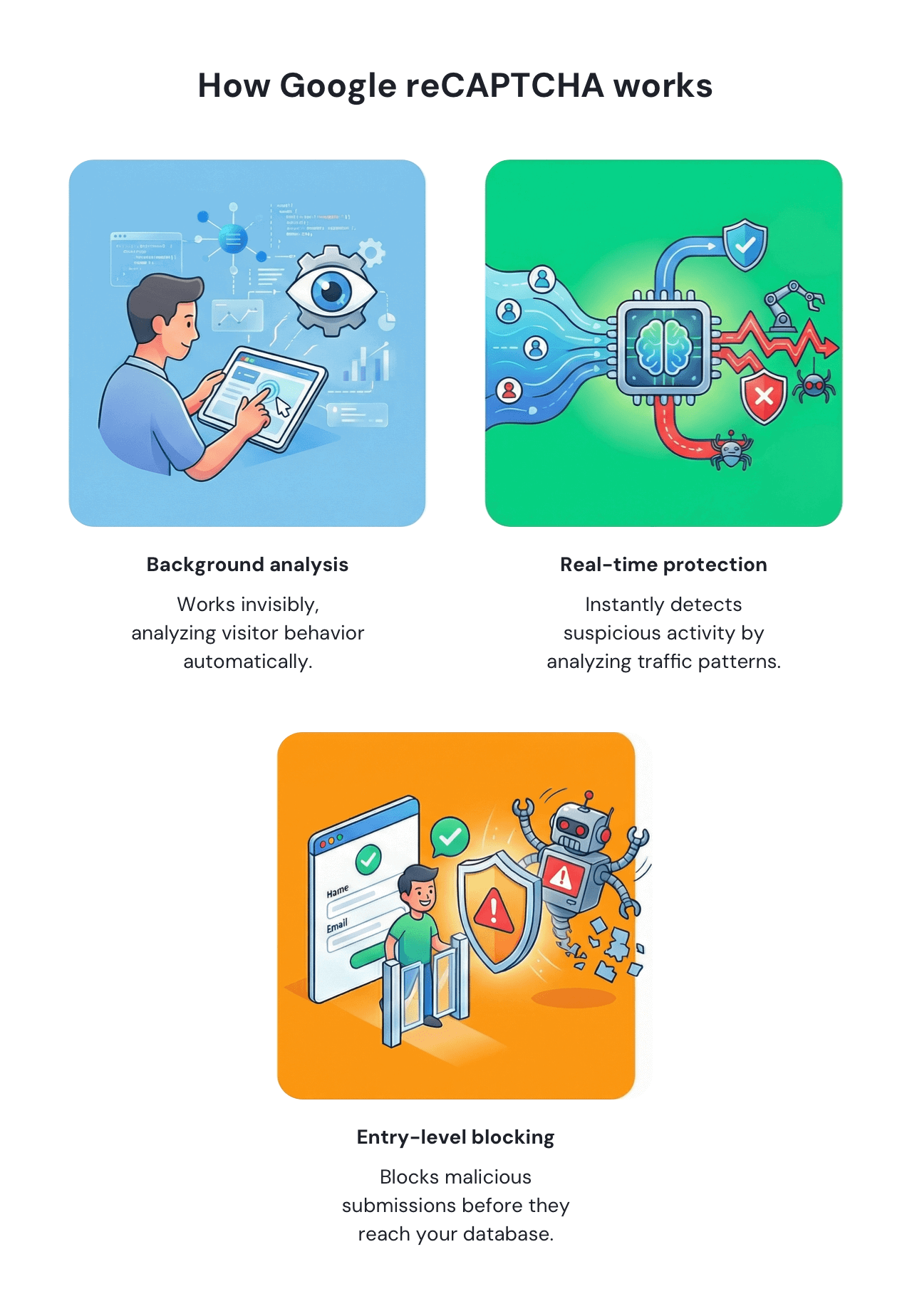 Because reCAPTCHA v3 works invisibly in the background, it adds this protection without introducing friction or disrupting the signup experience for genuine visitors.