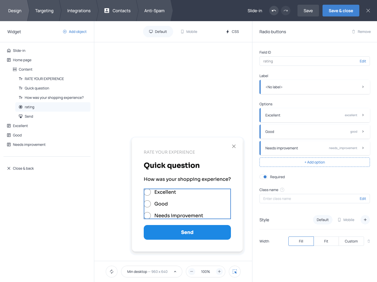 Fields used for branching should represent clear decision points. Structured fields such as radio buttons, dropdowns, ratings, and checkboxes are best suited for this purpose, as their responses are preset and easy to evaluate.