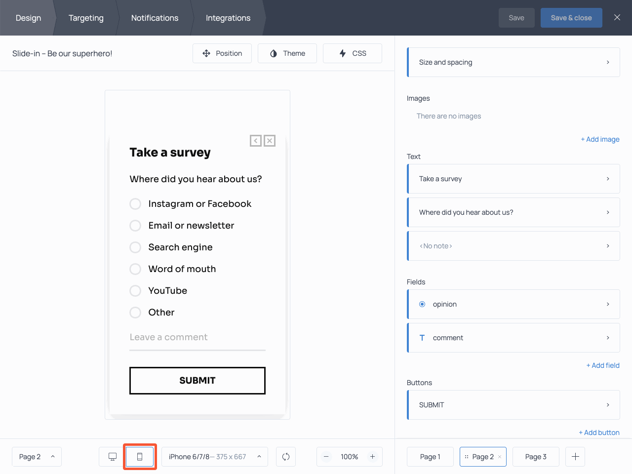 If you know a large chunk of your audience comes from mobile devices, you should ensure seamless user experience for them, too. To see how the survey will look on mobile, switch to the mobile preview mode using the corresponding button.