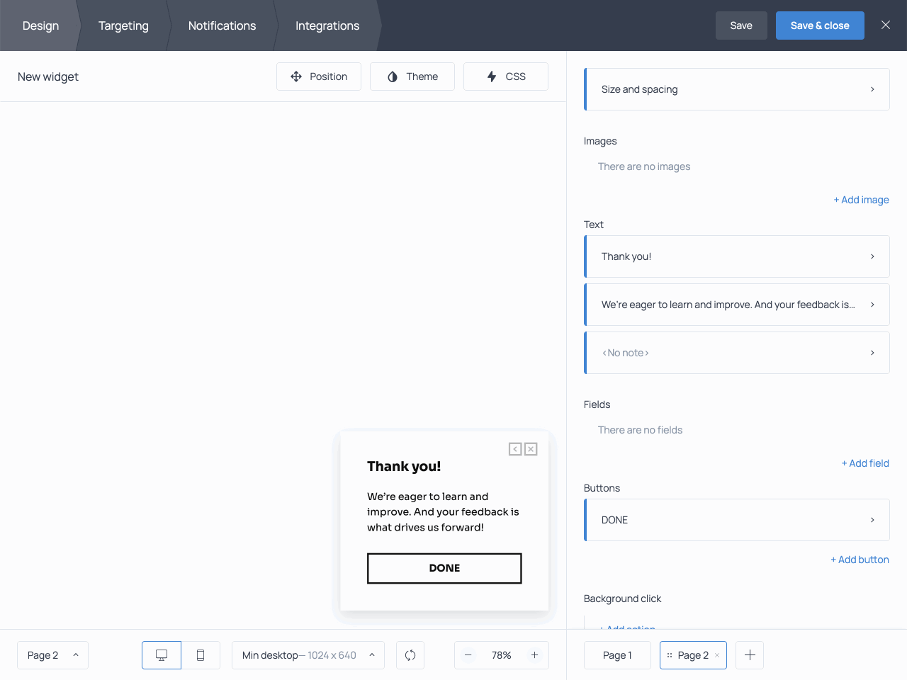 💡Want to display the survey on selected pages only? Type their URLs in the field titled Show widget on these pages.
