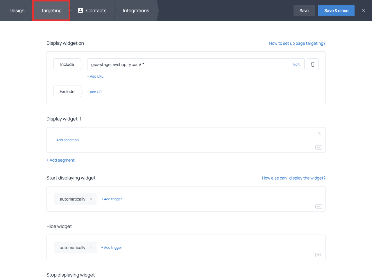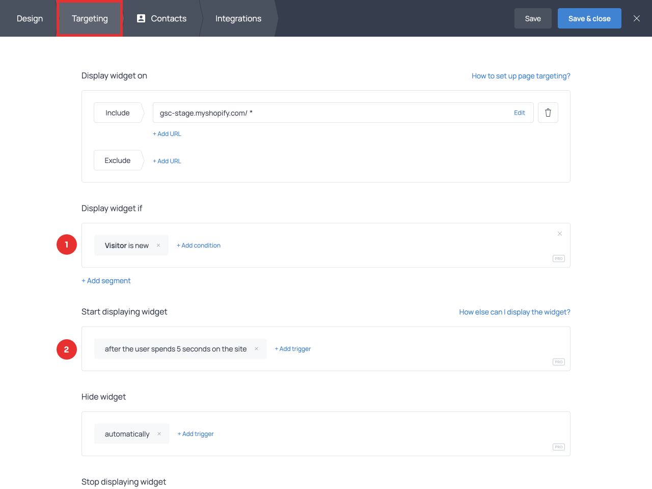 As an alternative to the welcome offer, you can create an exit-intent popup and use it to prevent website or shopping cart abandonment. In this case, use the exit-intent trigger for the ‘Start displaying widget’ control.
