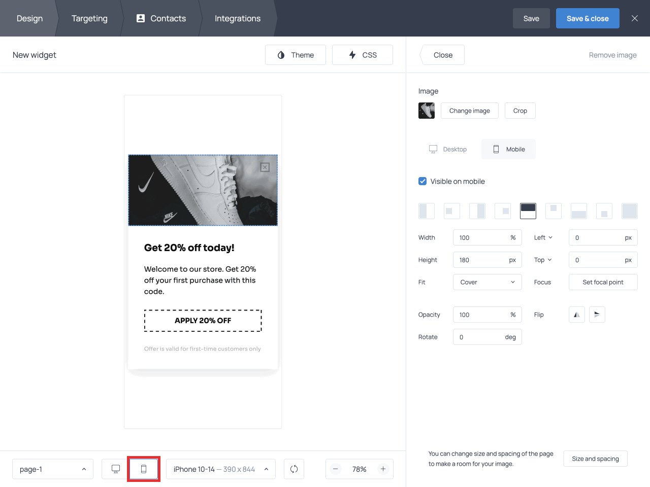 Note that the image will automatically adapt to the mobile version of your popup. Switch to the mobile preview to see what it looks like and toggle image setting controls if necessary.