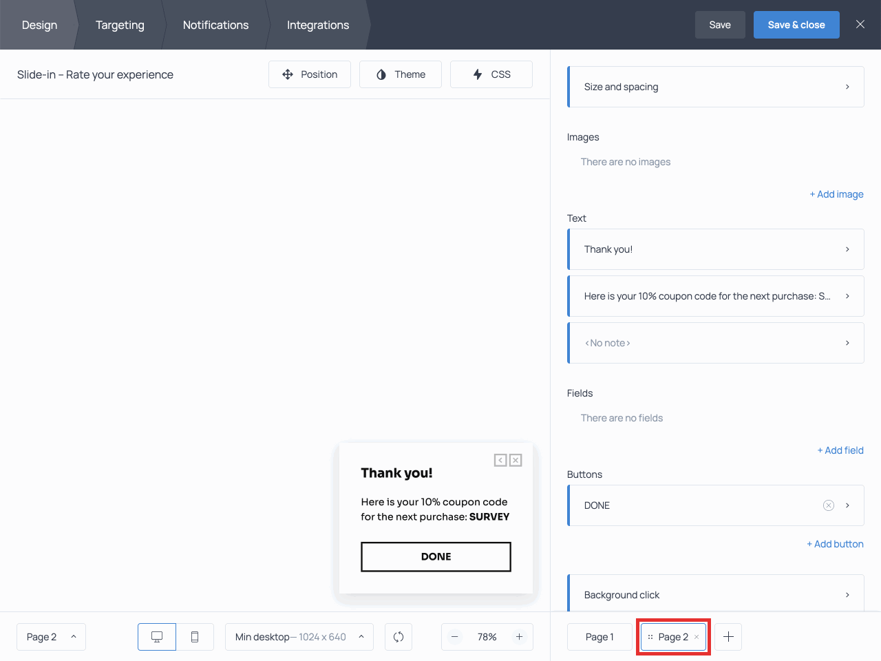 Now that your Shopify post-purchase survey is ready, let’s specify the pages where it should pop up. In our case, it’s the Thank you pages or/and the Order status pages.