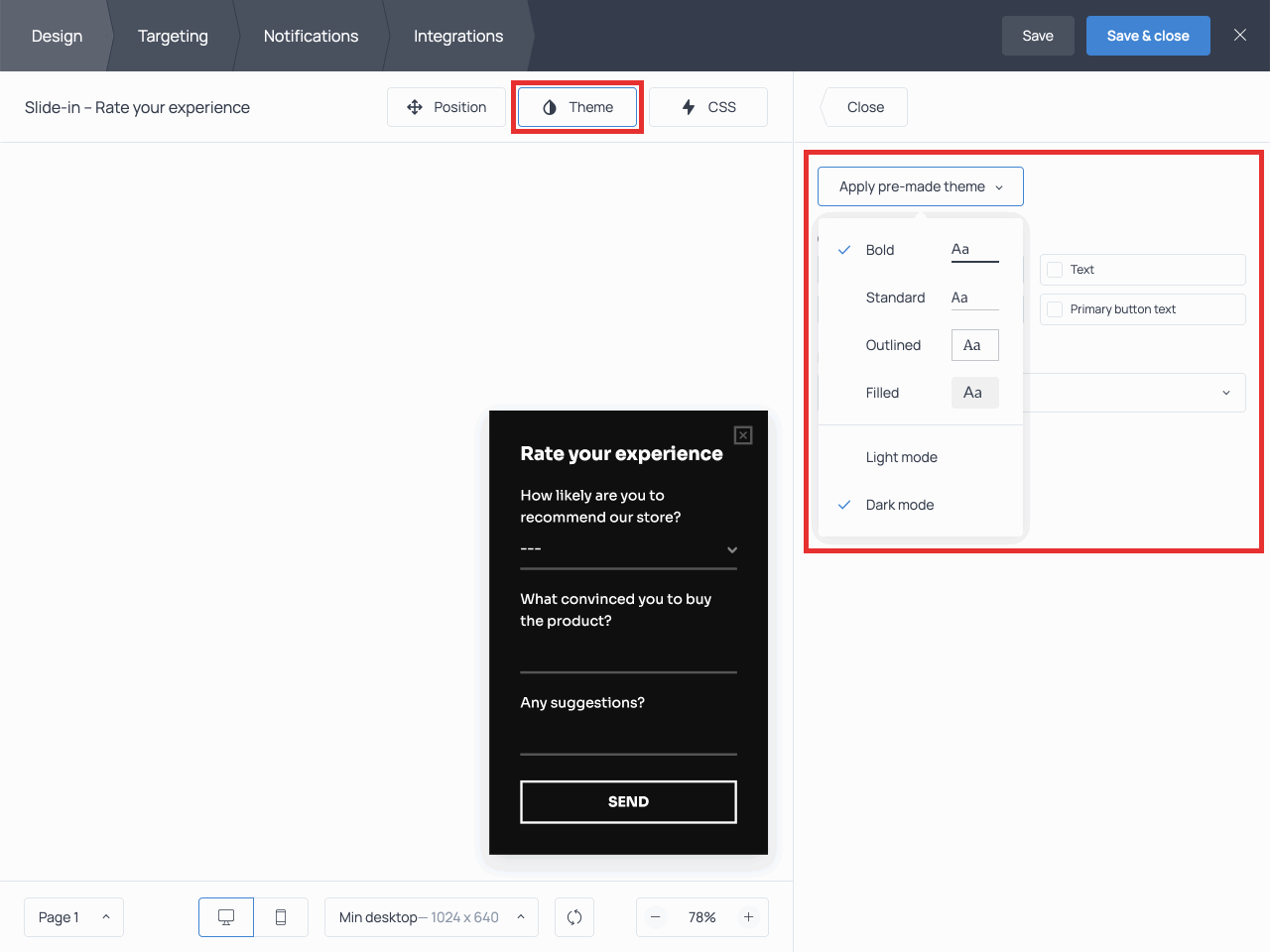 It’s a good practice to apply the style of your website to all your website forms. To do that, you can use the Theme menu and the CSS editor, the latter being designed for more advanced users.