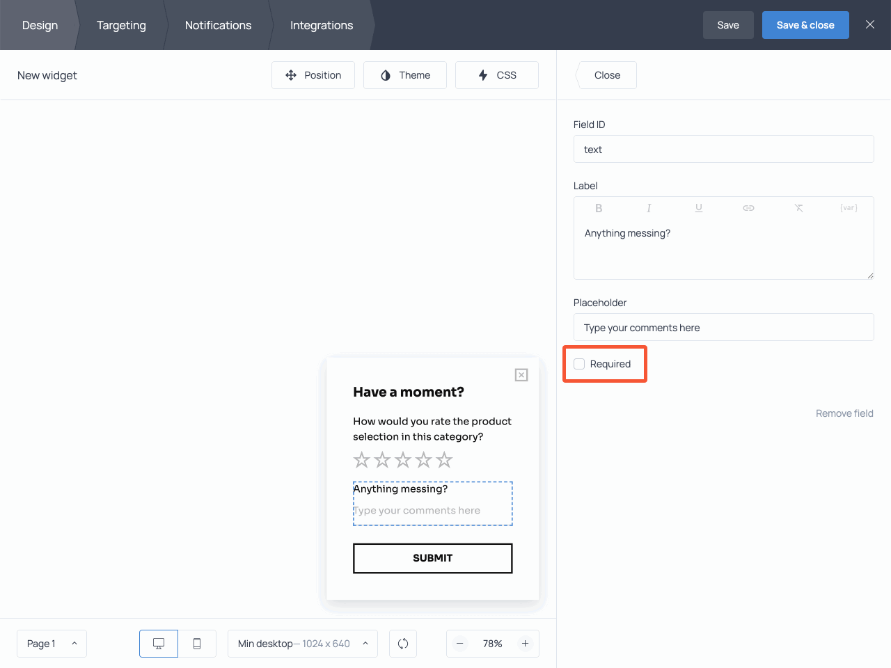 Notice that you can also decide when to stop displaying the rating scale widget. Usually, it makes sense to hide it once a visitor has submitted their response. However, if they’ve closed it without responding, you can choose to display it again after some time.