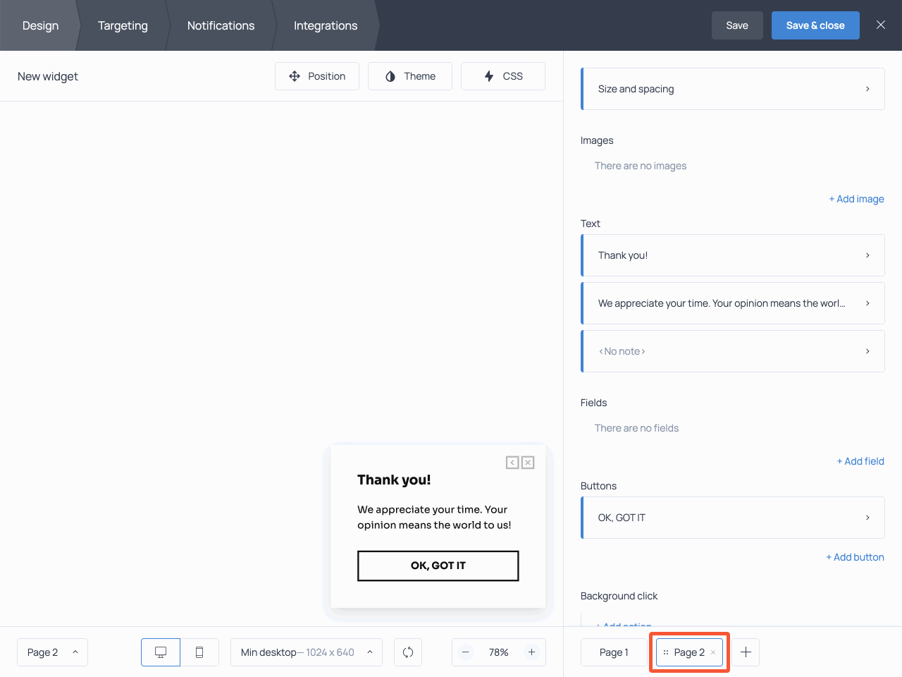 Most survey and contact form templates contain a submission success message. You can find it on Page 2. Use this page to thank your visitors for submitting the form, tell them about the next steps, or provide a discount code in case you promised it as a survey incentive at the beginning.