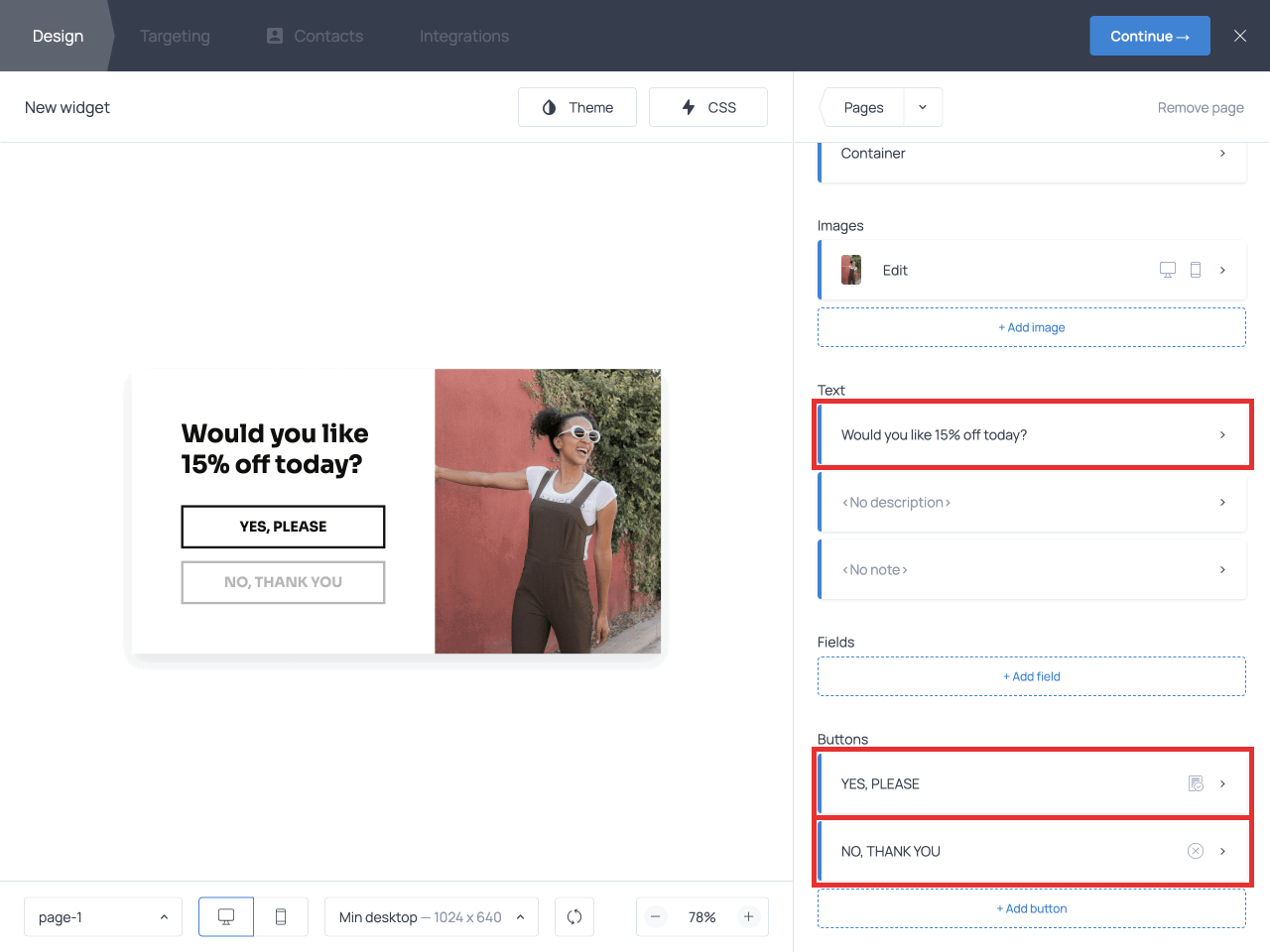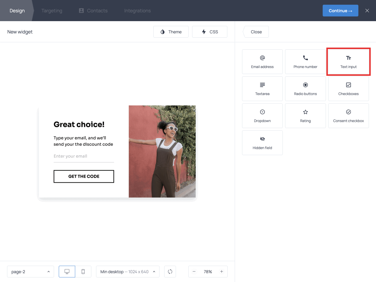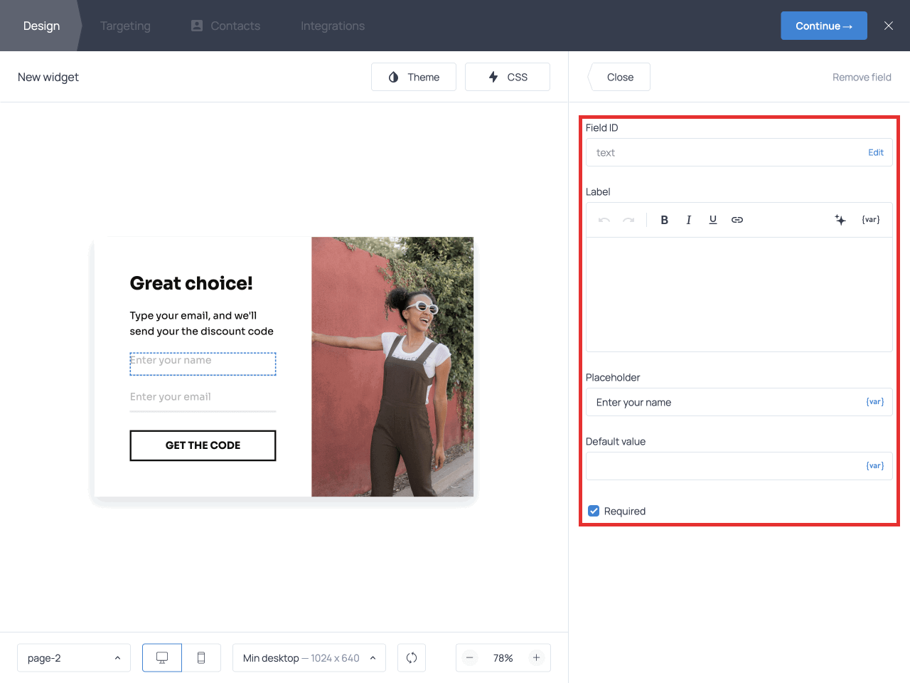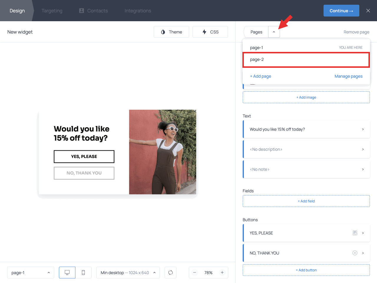When you’re done designing the popup, click Continue → to move to the Targeting tab to define who will see the popup and when.