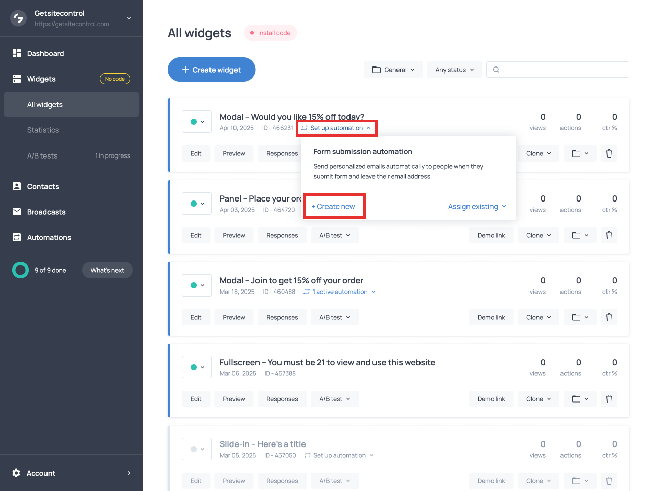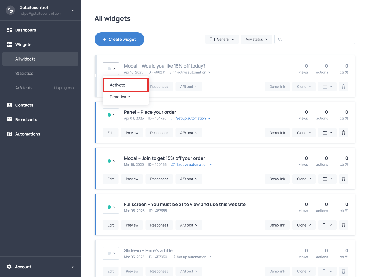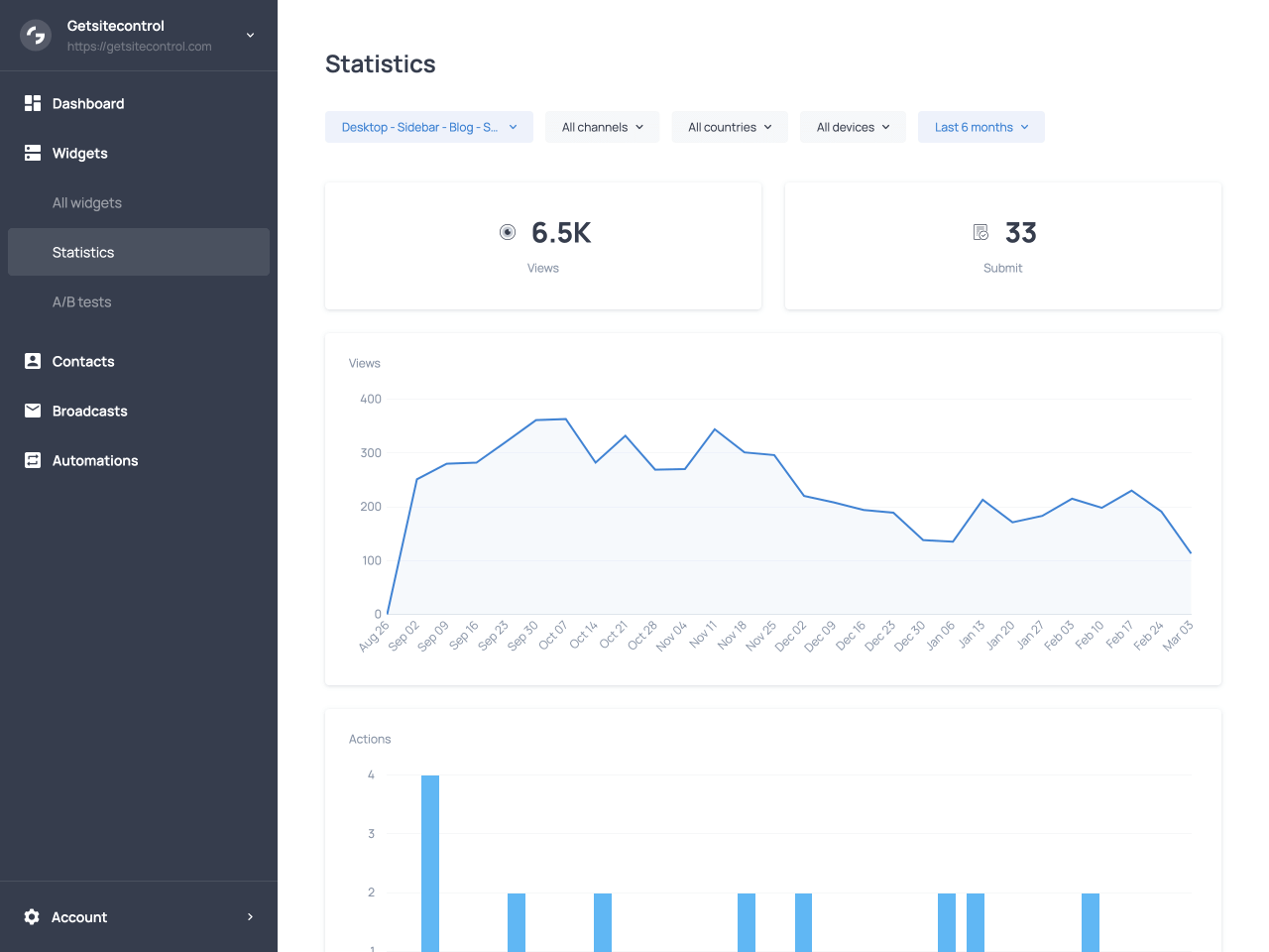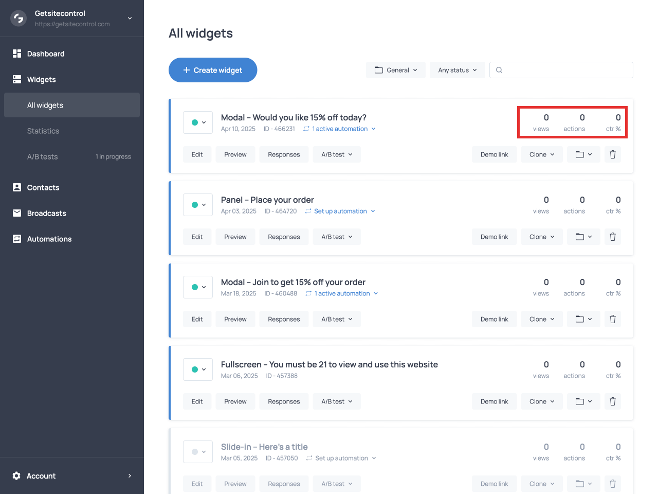 Once your Yes or No popup is live, you can track its performance using Getsitecontrol’s built-in analytics.