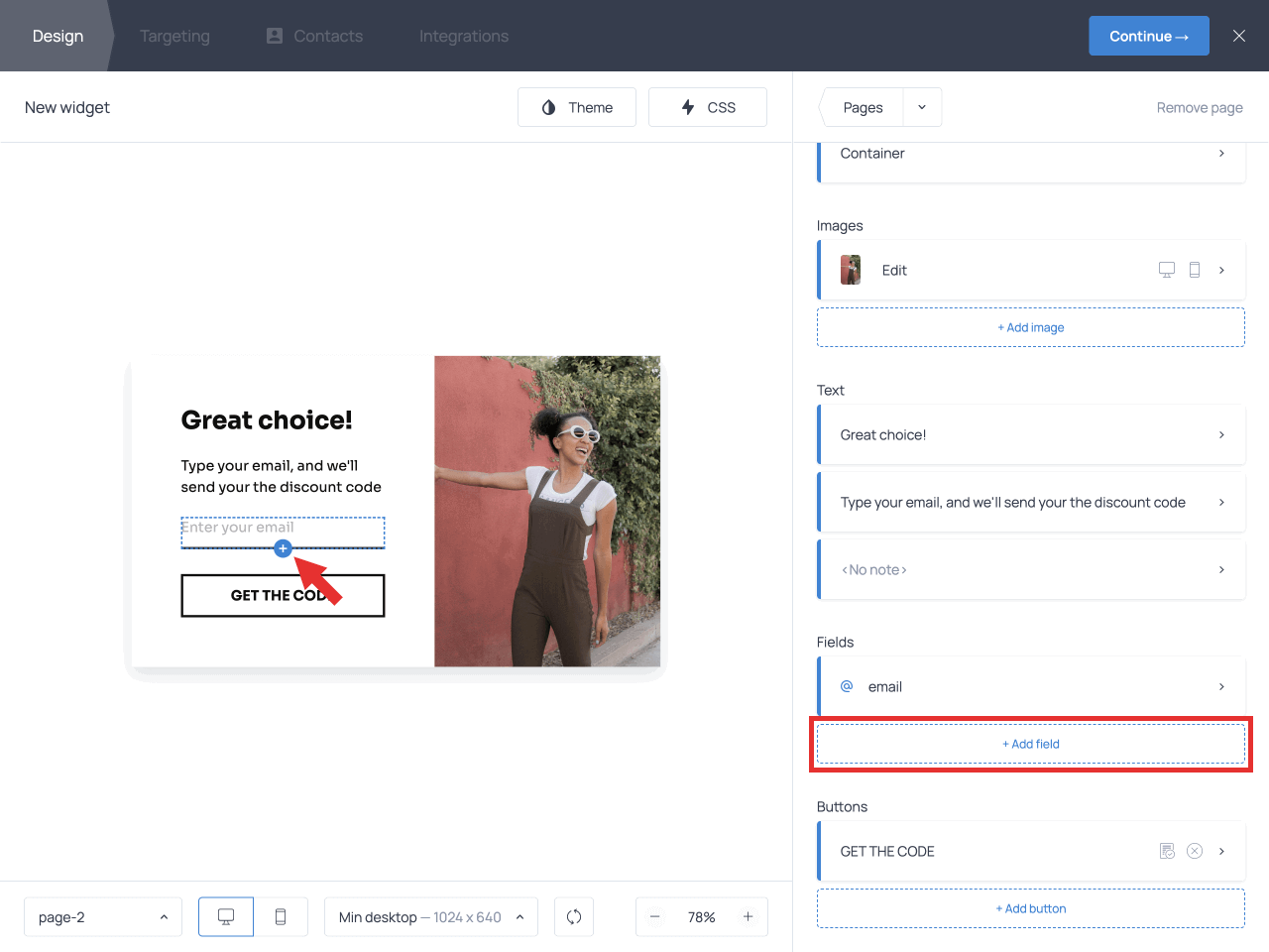You might want to add new fields to capture the subscriber’s name, phone number, preferences, or consent to receive your marketing emails. To add a new field, hit + Add field or use the cross icon under the existing field on the template.